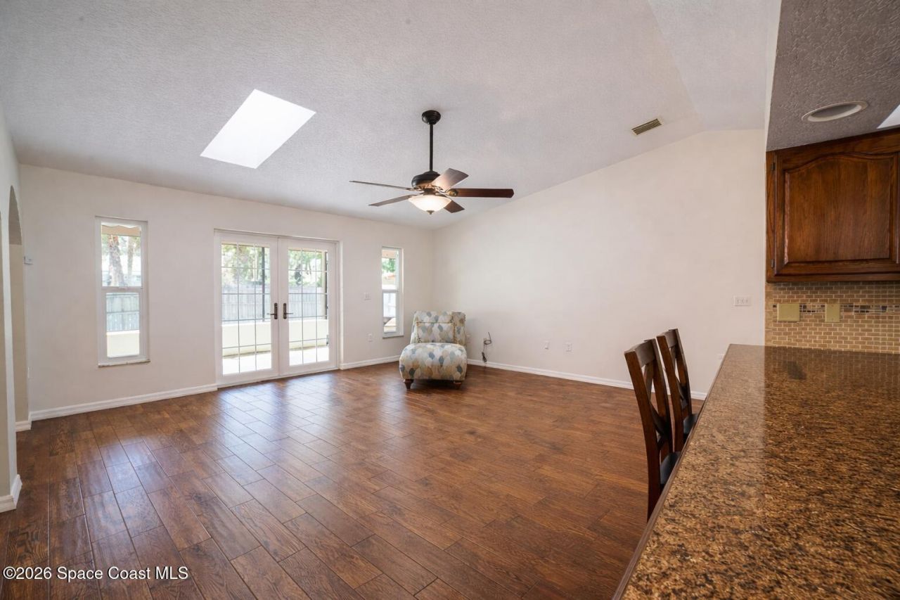 Welcome home to this updated 3-bedroom, 2-bath residence offering comfort and style. Renovated bathrooms feature tiled showers, new double vanities, and updated flooring. The open kitchen flows into the living and dining areas and includes two pantries and an eat-in space. The primary suite offers sliders to the patio and a large walk-in shower with custom shelving. Guest bedrooms have new carpet, while the main living areas feature engineered hardwood flooring. Enjoy epoxy-coated floors in the ...Welcome home to this updated 3-bedroom, 2-bath residence offering comfort and style. Renovated bathrooms feature tiled showers, new double vanities, and updated flooring. The open kitchen flows into the living and dining areas and includes two pantries and an eat-in space. The primary suite offers sliders to the patio and a large walk-in shower with custom shelving. Guest bedrooms have new carpet, while the main living areas feature engineered hardwood flooring. Enjoy epoxy-coated floors in the garage and on the back patio. The fully fenced backyard offers plenty of room for a pool, shed, or recreational toys. Impact windows and doors are installed along the back of the home. Conveniently located about 20 minutes from Kennedy Space Center and 35 minutes from Orlando International Airport. Move-in ready and waiting for its new owners! 🏡✨